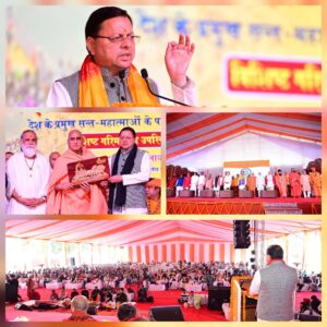 मुख्यमंत्री ने कहा कि देवभूमि उत्तराखंड संपूर्ण भारत के नागरिकों के लिए आस्था, विश्वास और संस्कृति का पवित्र केंद्र है। देवभूमि के सांस्कृतिक मूल्यों और मूल स्वरूप को बनाए रखने के लिए राज्य सरकार ने राज्य में जबरन धर्मांतरण के खिलाफ कठोर कानून लागू किया है। उत्तराखंड में एक सख्त दंगारोधी कानून भी बनाया है। 10 हजार एकड़ से अधिक की सरकारी भूमि को अतिक्रमण से मुक्त कराया है। देश में सबसे पहले उत्तराखंड में समान नागरिक संहिता कानून लागू कर सभी नागरिकों के लिए एक समान कानून की स्थापना की है। इस अवसर पर केन्द्रीय मंत्री मनोहर लाल खट्टर,अवधेशानन्द जी महाराज, कुमार ऋषि, जैन समाज, स्वामी लोकेश मुनि, बाबा भूपेन्द्र, कपिल पुरी जी महाराज एवं अनेक संतगण मौजूद थे।